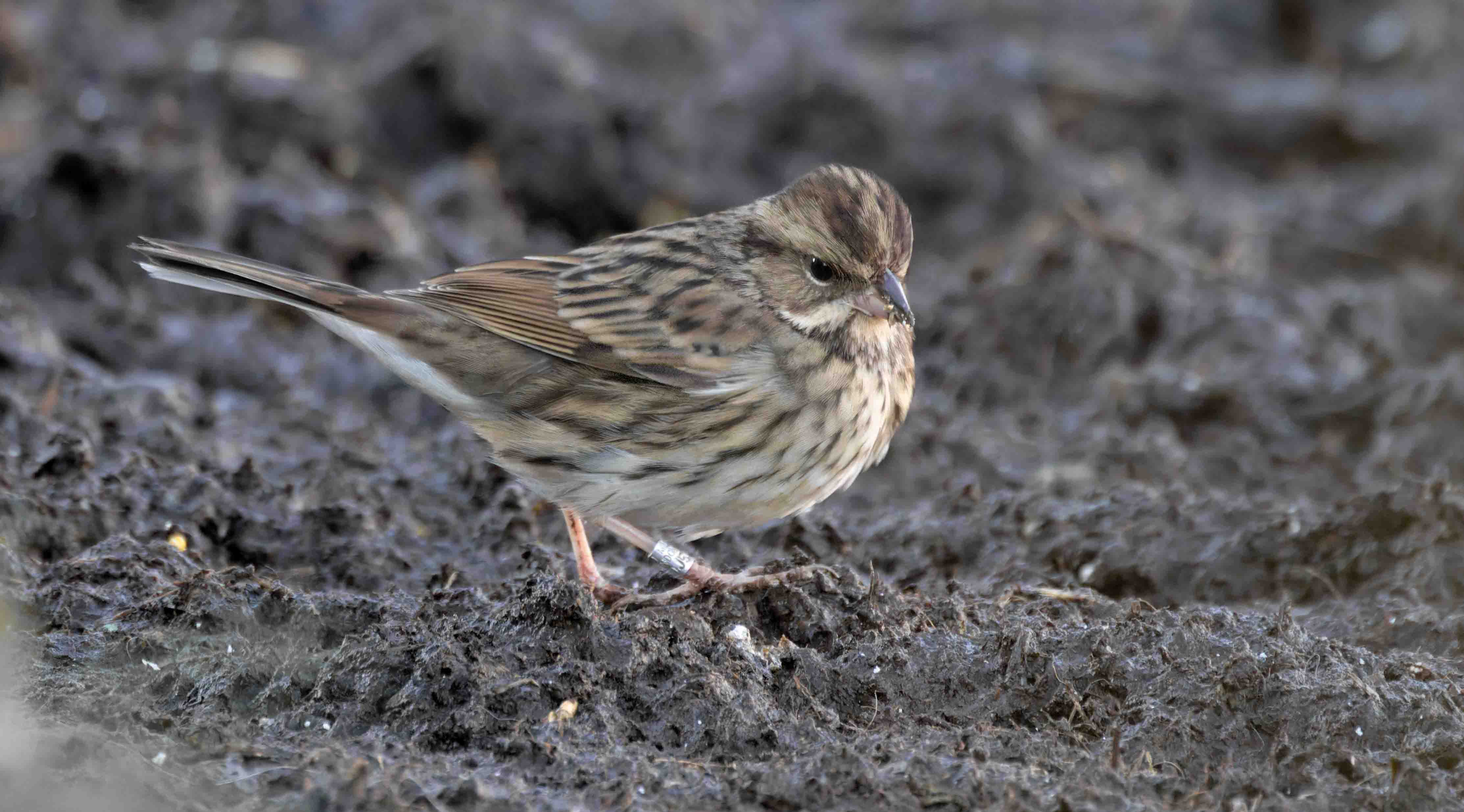 The reappearance of the second Black-faced Bunting at Barkland mirrored the movements of the first, joining the same flock of sparrows under the feeder (Alex Penn)