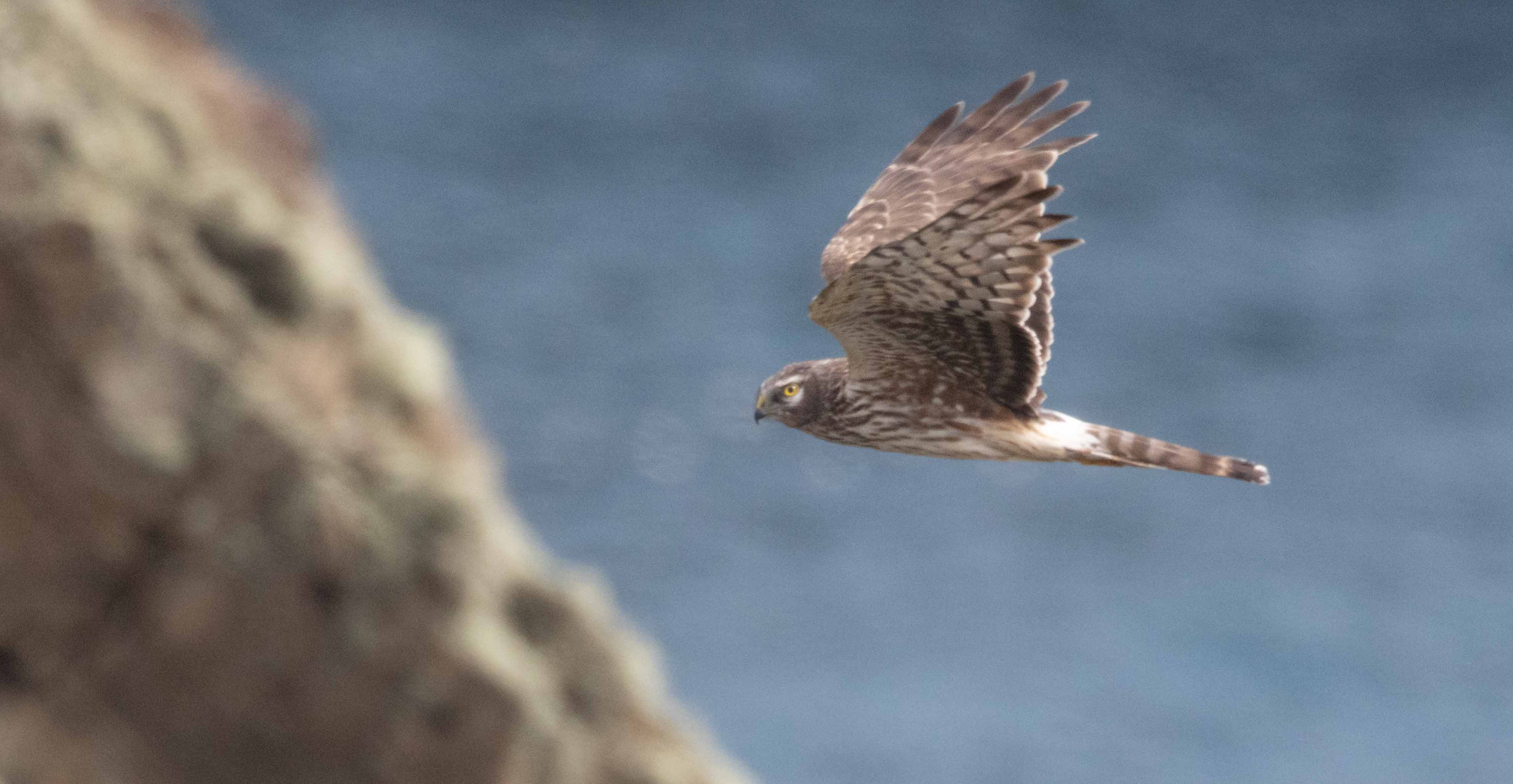 A light but chilly SE breeze brought increases in warblers, with a light scattering of Phylloscs throughout the isle and several Blackcap along the SW cliffs. Also newly-arrived was an immature male Marsh Harrier, which spent much of the morning dodging the attention of gulls along the west coast. A Woodlark at Springfield is probably best treated as the same as the bird last seen on 9th, though given the weather conditions and this bird’s jumpy and vocal nature, we’d not be surprised if it was a new individual. The drop in the wind also finally encouraged large numbers of Puffin back to the isle, with thousands rafting offshore through the day, and birds coming ashore en masse in the early evening.
