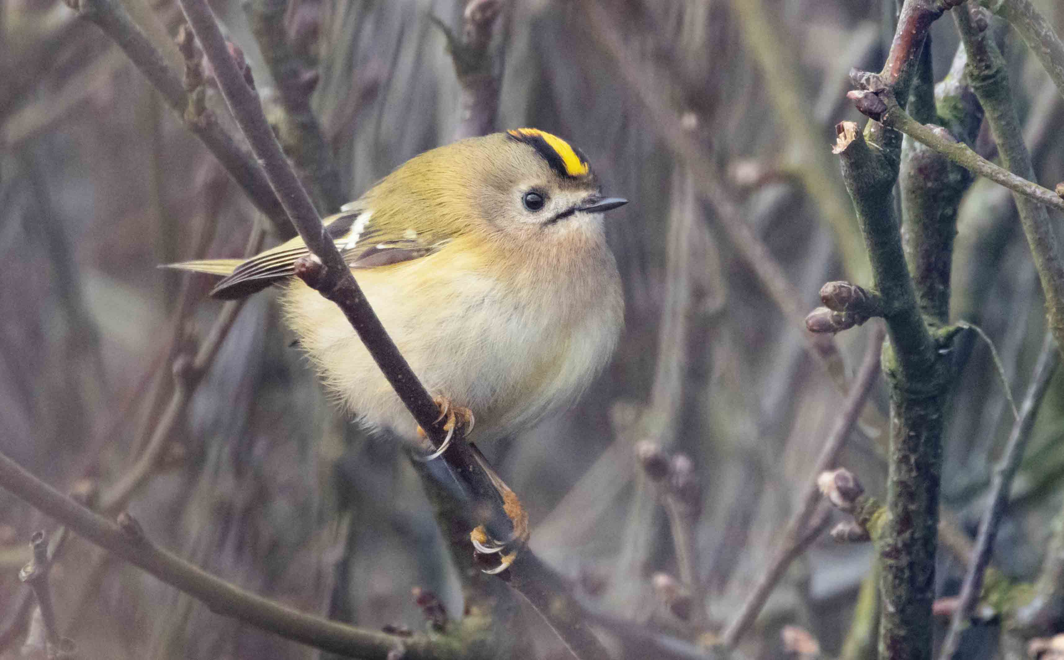 The first Goldcrest of the year found some shelter in the Burkle garden (Alex Penn)