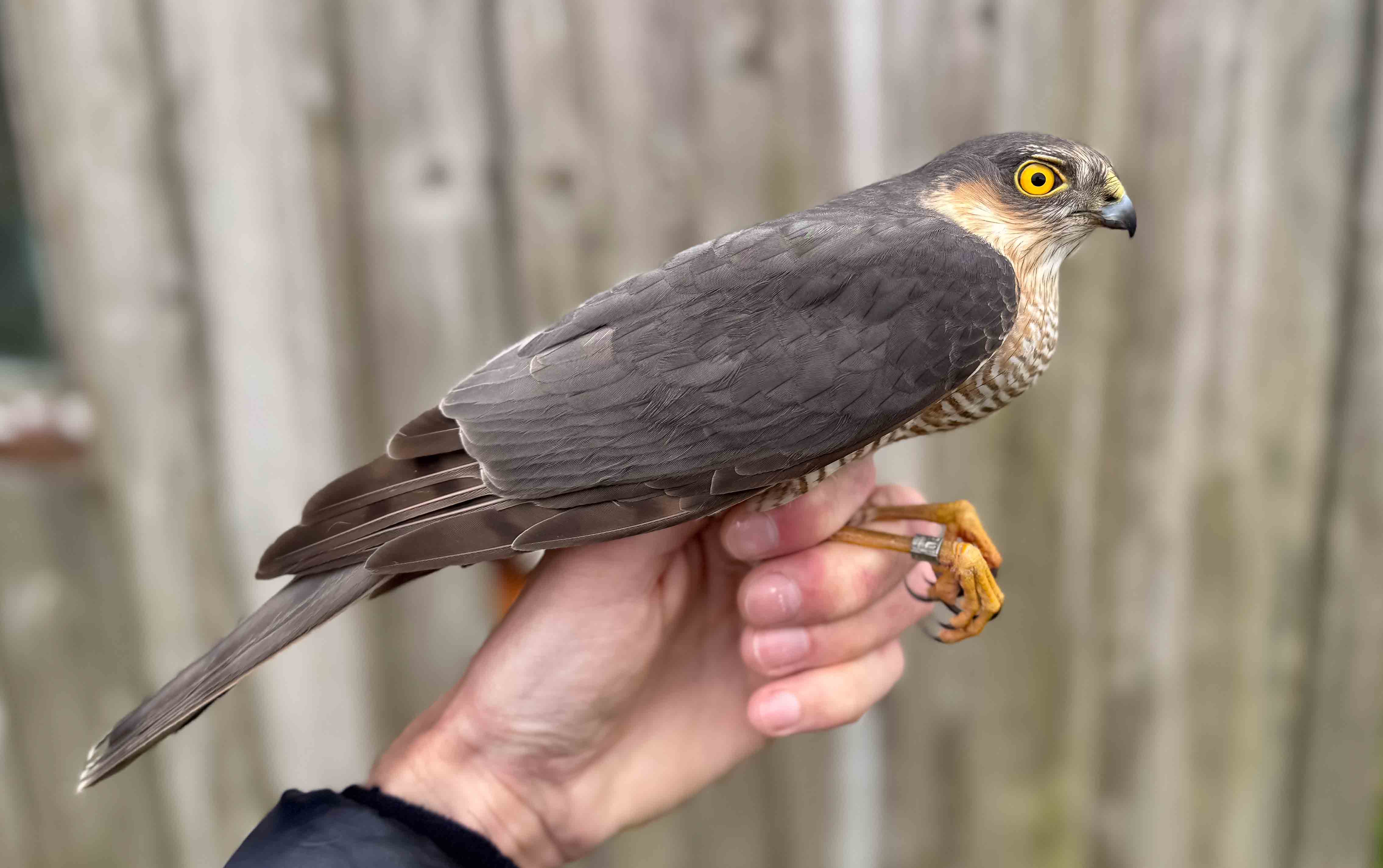 A huge female Sparrowhawk ringed this morning (Tom Wright)