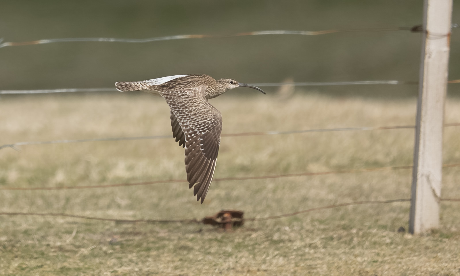 A general clear-out of birds was evident today, though birding was not easy in the stronger breeze. The Short-toed Lark remained present, and the first Whimbrel of the year flew through Gilsetter.
