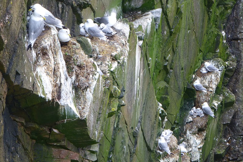 It seems difficult to believe that there were no Fulmars breeding on Fair Isle before 1903, when the species spread from its British outpost of St Kilda (or possibly from the Faroe Islands or Iceland) and colonised the south of Shetland. As a scavenger of the seas with a varied diet, the Fulmar was able to take advantage of whaling and fishing fleets to increase its distribution, which now includes the North Atlantic and North Pacific. In recent years, the success story of the Fulmar has taken a step backward with numbers decreasing throughout Britain and Ireland. On Fair Isle, the population peaked at over 43,000 pairs in 1996, but was down to 32,061 pairs in 2016. The Fulmar’s habit of scavenging scraps, plankton and fish from near the surface has led to an increasing amount of plastic being ingested by the birds. Studies in the North Sea showed that Fulmars have an average of around 30 pieces of plastic per bird in their stomachs (that’s the equivalent of about 60 grams of plastic in a human stomach). Despite being able to live to well over 40 years, many are starving to death at a much younger age, with the plastic being carried in their stomachs possibly contributing to this.